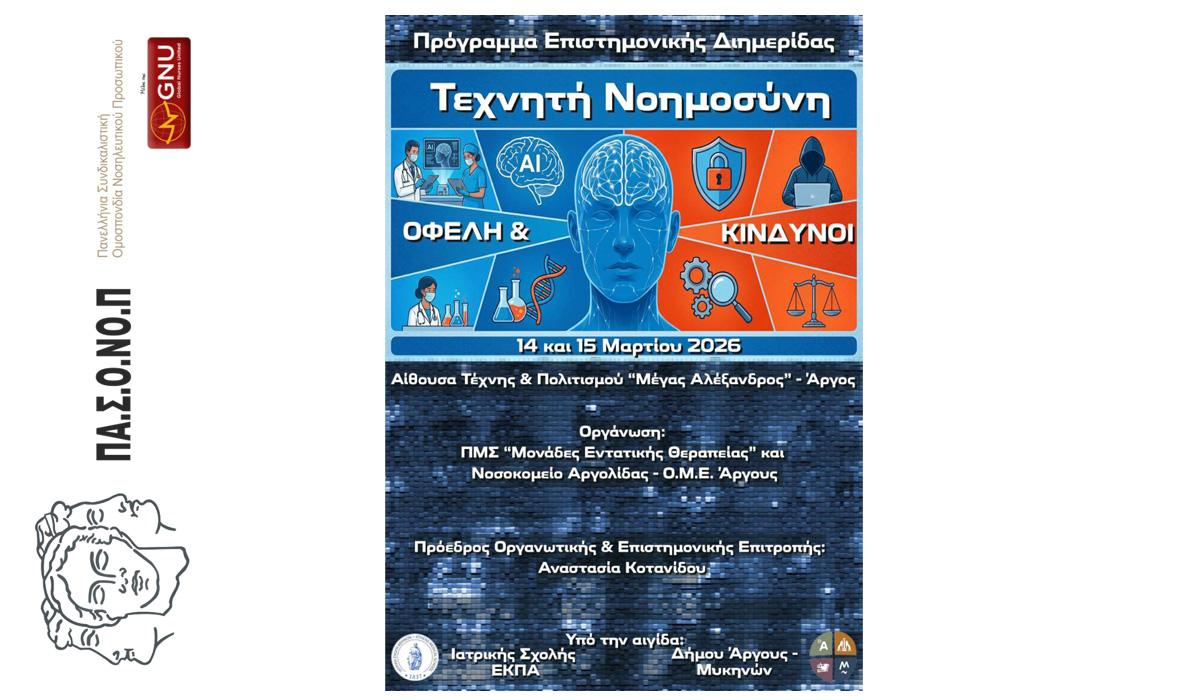 Επιστημονική Διημερίδα «Τεχνητή Νοημοσύνη: Οφέλη και Κίνδυνοι», 14 και 15 Μαρτίου 2026, Άργος.