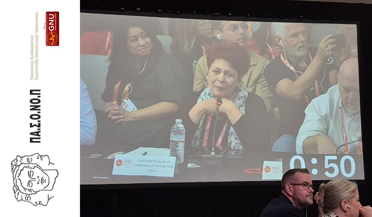 Την Πα.Σ.Ο.Νο.Π. εκπροσώπησαν επάξια ο Πρόεδρος κ. Τσόλας Γεώργιος, η Γενική Γραμματέας κα. Δέλλιου Αθανασία, η Αντιπρόεδρος κα. Ασλάνογλου Θωμαή και ο Αν. Ταμίας κ. Κατσικαρέλης Στυλιανός, μεταφέροντας το μήνυμα της ενότητας, της αξιοπρέπειας και της διεκδίκησης του Έλληνα νοσηλευτή στη διεθνή κοινότητα.