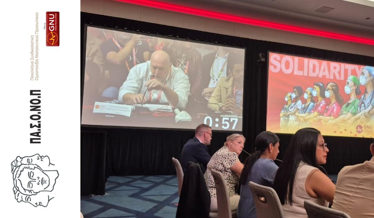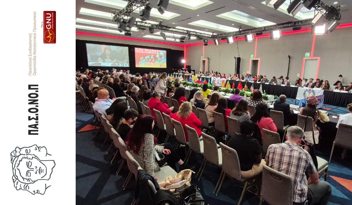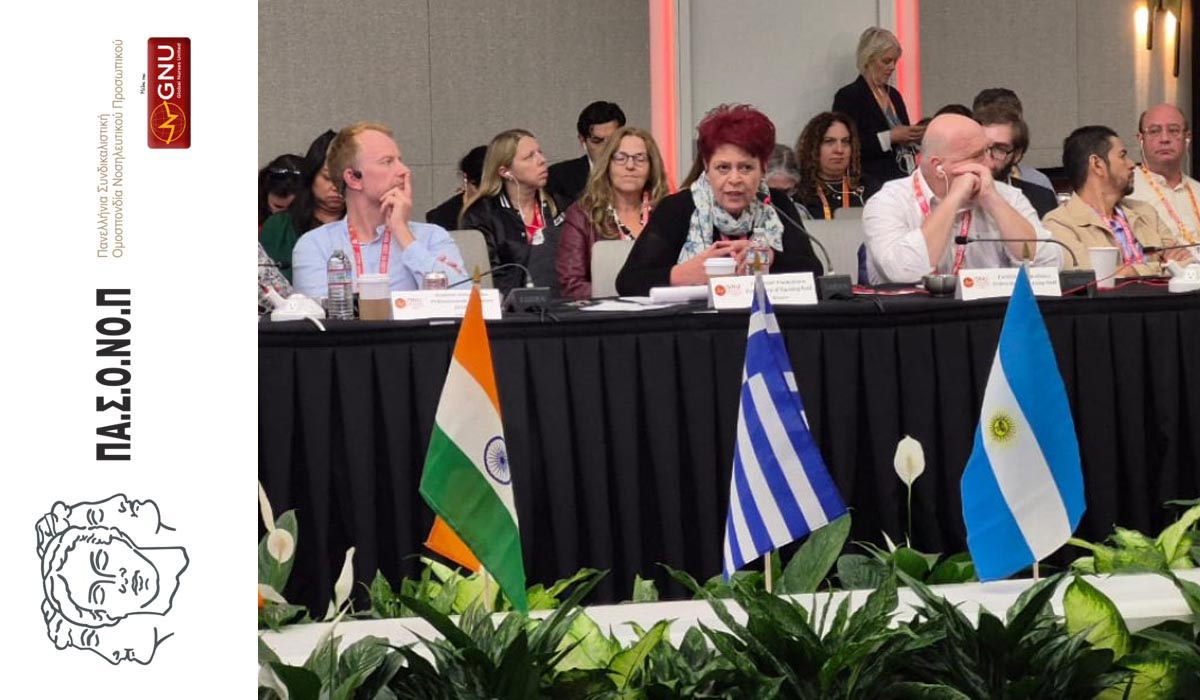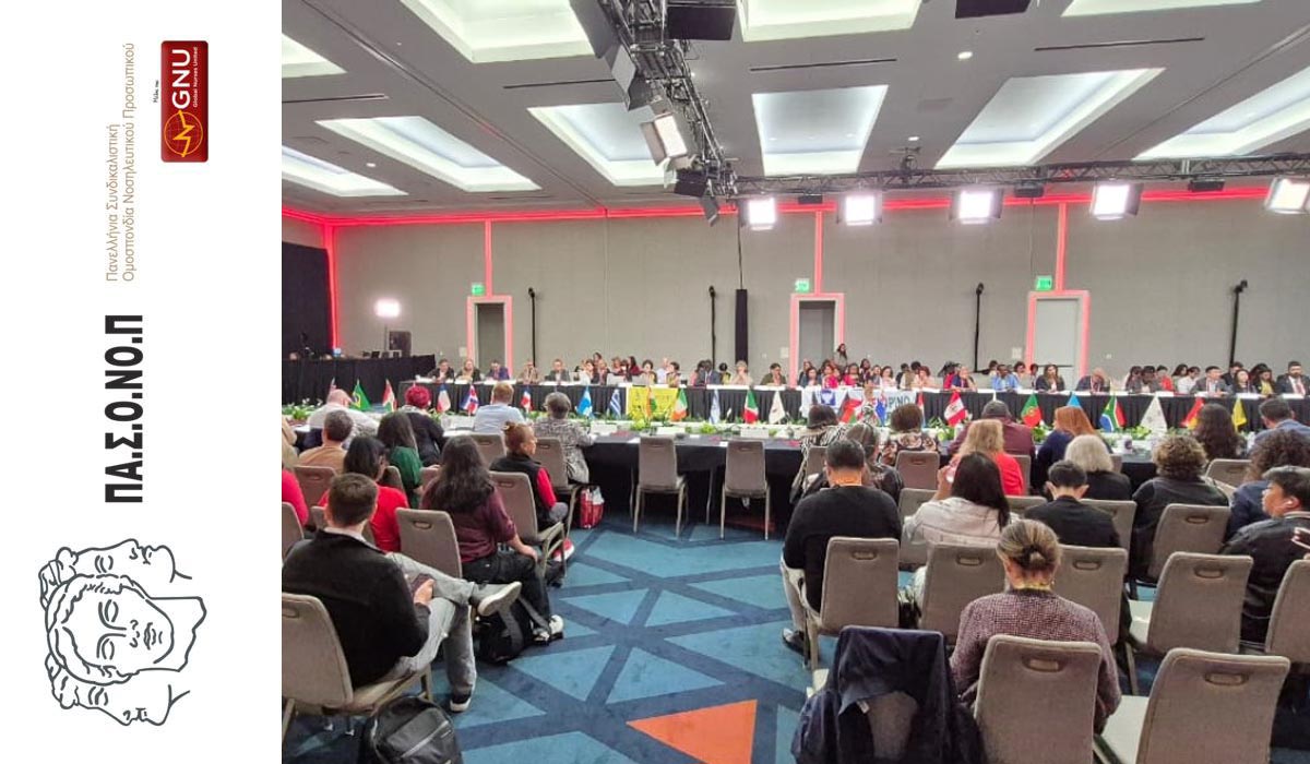Η Πανελλήνια Συνδικαλιστική Ομοσπονδία Νοσηλευτικού Προσωπικού (Πα.ΣΟ.Νο.Π.) συμμετείχε στην Παγκόσμια Συνέλευση στο San Francisco της Global Nurses United (GNU), που πραγματοποιήθηκε στις 5 Οκτωβρίου 2025, συγκεντρώνοντας τις φωνές των νοσηλευτών από κάθε γωνιά του πλανήτη.