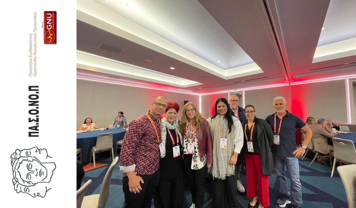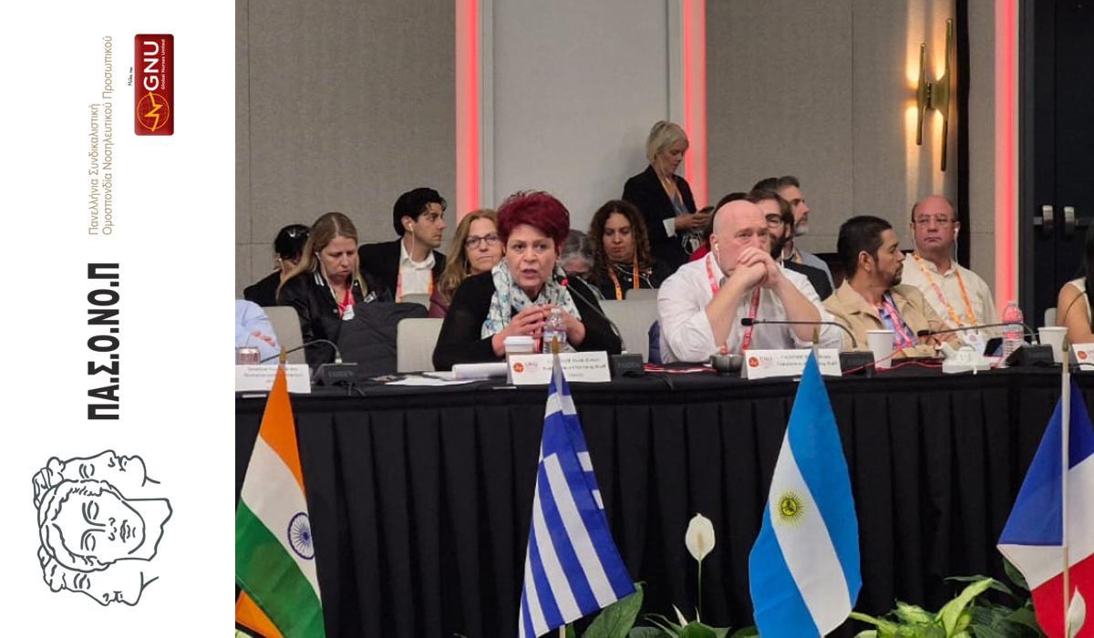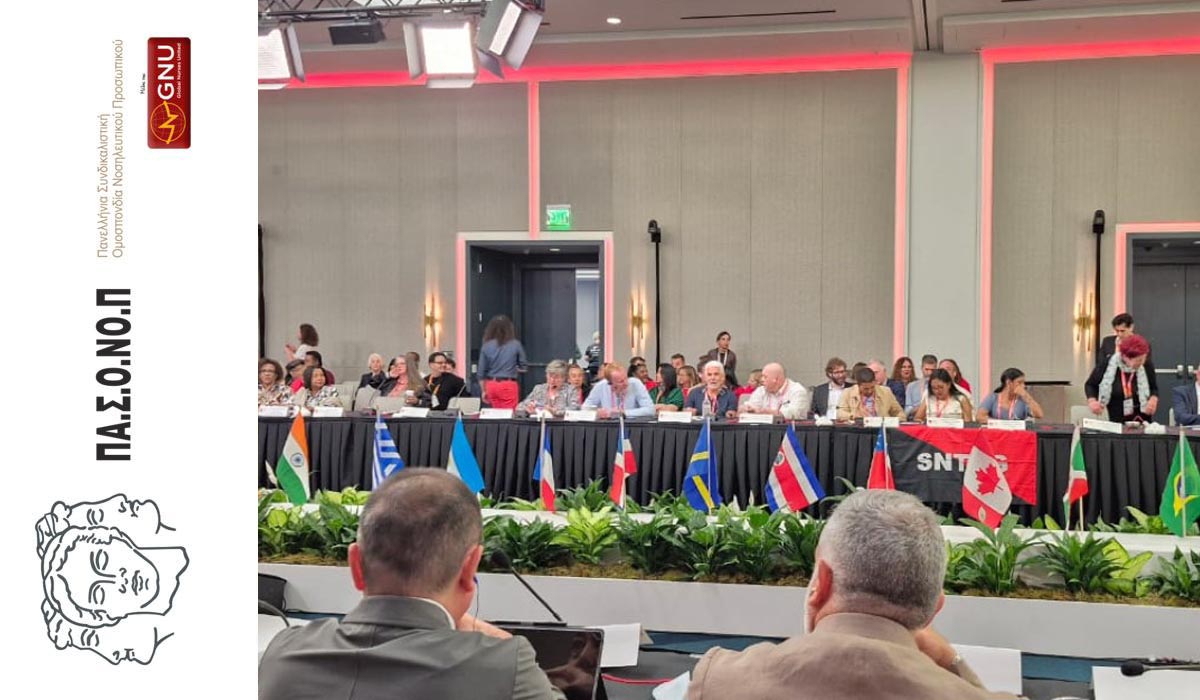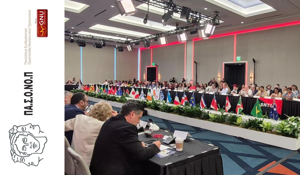 Η Πανελλήνια Συνδικαλιστική Ομοσπονδία Νοσηλευτικού Προσωπικού (Πα.ΣΟ.Νο.Π.) συμμετείχε στην Παγκόσμια Συνέλευση στο San Francisco της Global Nurses United (GNU), που πραγματοποιήθηκε στις 5 Οκτωβρίου 2025, συγκεντρώνοντας τις φωνές των νοσηλευτών από κάθε γωνιά του πλανήτη.